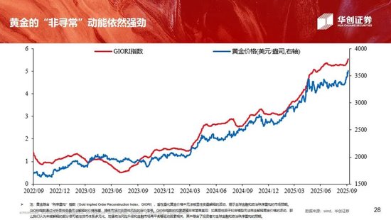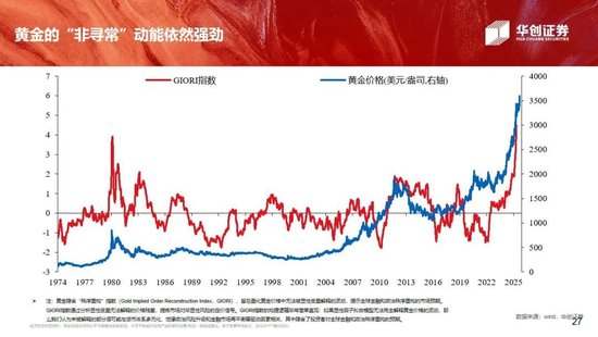 最后我们说一下黄金,我们认为黄金的非寻常动能依然很强,所以我们还是十年战略级别看多黄金。我们给黄金做了个指数——GIORI指数,什么意思?就是把黄金当中能够被传统宏观因子解释的全都剥离掉后,剩下的部分。