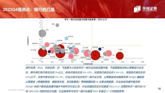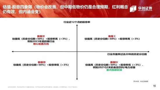 第二点,是PPI同比-3%的时候,你能接受一个3%的股息,如果PPI到0%了,你的股息追求肯定往上走,这里面不同的行业的股息率,我觉得都得动态去看,不要对行业有歧视——任何的行业都是轮动的,从股息角度来讲,任何一个行业只要估值分位数足够低,股息率足够高,就可以成为新一轮的红利扛旗人。红利不等于银行,红利的内涵一直在变,就像你一年前看银行,它的估值分位数最低,相对股息最高,一年后已经不是这个位置了,这是第二个观点。