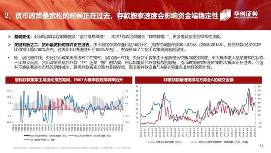 这里注意,我们并不认为看货币政策最宽松的时候过去了,就意味着看加息。中国经济离能承受加息还有很长一段距离,但不可否认的是,为了应对居民存款搬家脉冲的不稳定性,资金波动性加大是有一定必然性的。