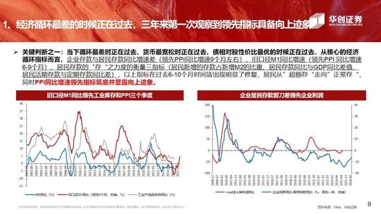 这两个领先指标都领先PPI和工业利润大概9~12个月、当下都持续修复8、9个月了。最近两三个月,这两个指标又都过了关键位置、具备了指征意义;比如旧口径的M1,从-7%到0%我们下不了判断,为什么?一是这指标之前从来没转负过,二是没有统计指征,三是去年手工补息的影响拆不明白。