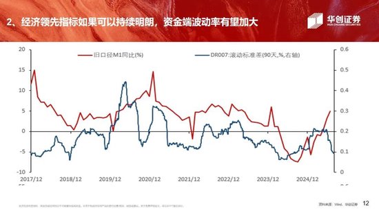 这里我们看一个非常好的关系,也就是旧口径M1和R007的标准差,对应关系是非常好的,什么意思呢?经济如果能够确定性改善,资金端波动率是要上升的,很难给你一个既低又平的利率环境,这本身就是对债券的挑战。