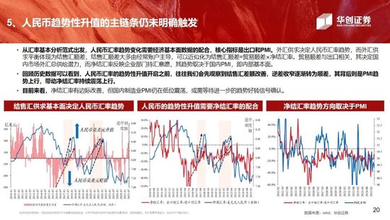 所以以往经验来看,其实都是PMI、结售汇率明确了,之后大概一个月、一个半月,升值空间才能被央行所释放。所以我们觉得目前主链条还没有触发。
