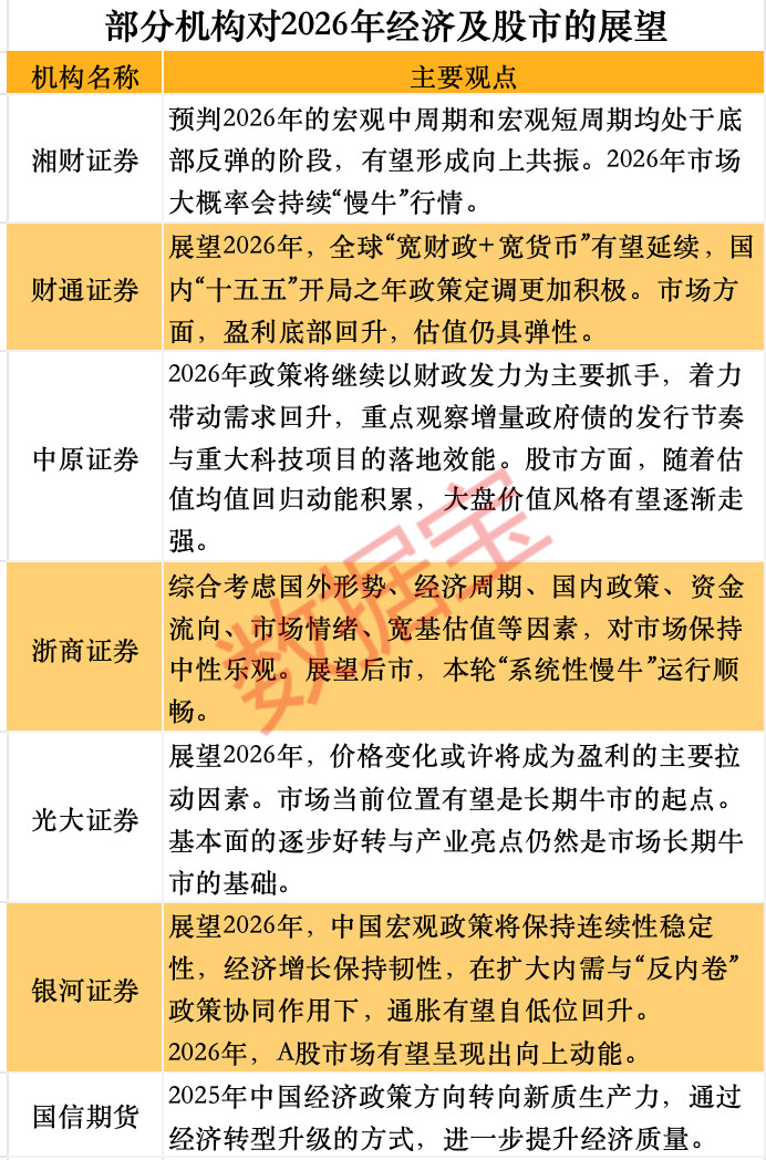 年末,机构密集召开2026年度策略会、发布经济及大类资产展望报告,聚焦2025年走势总结、“十五五”开局宏观经济前瞻、A股投资主线及产业机遇。