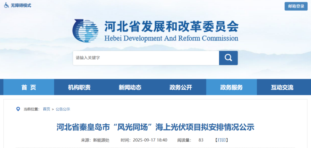9月17日,河北省发改委发布《河北省秦皇岛市“风光同场”海上光伏项目拟安排情况公示》,公示5个风光同场项目,规模共2GW。