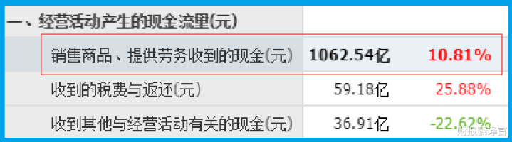 判断一家公司收入质量,关键要看真金白银的流入。中兴今年销售商品收到的现金高达1063亿元,这个数字不仅超过了营业收入,还实现了11%的增长。